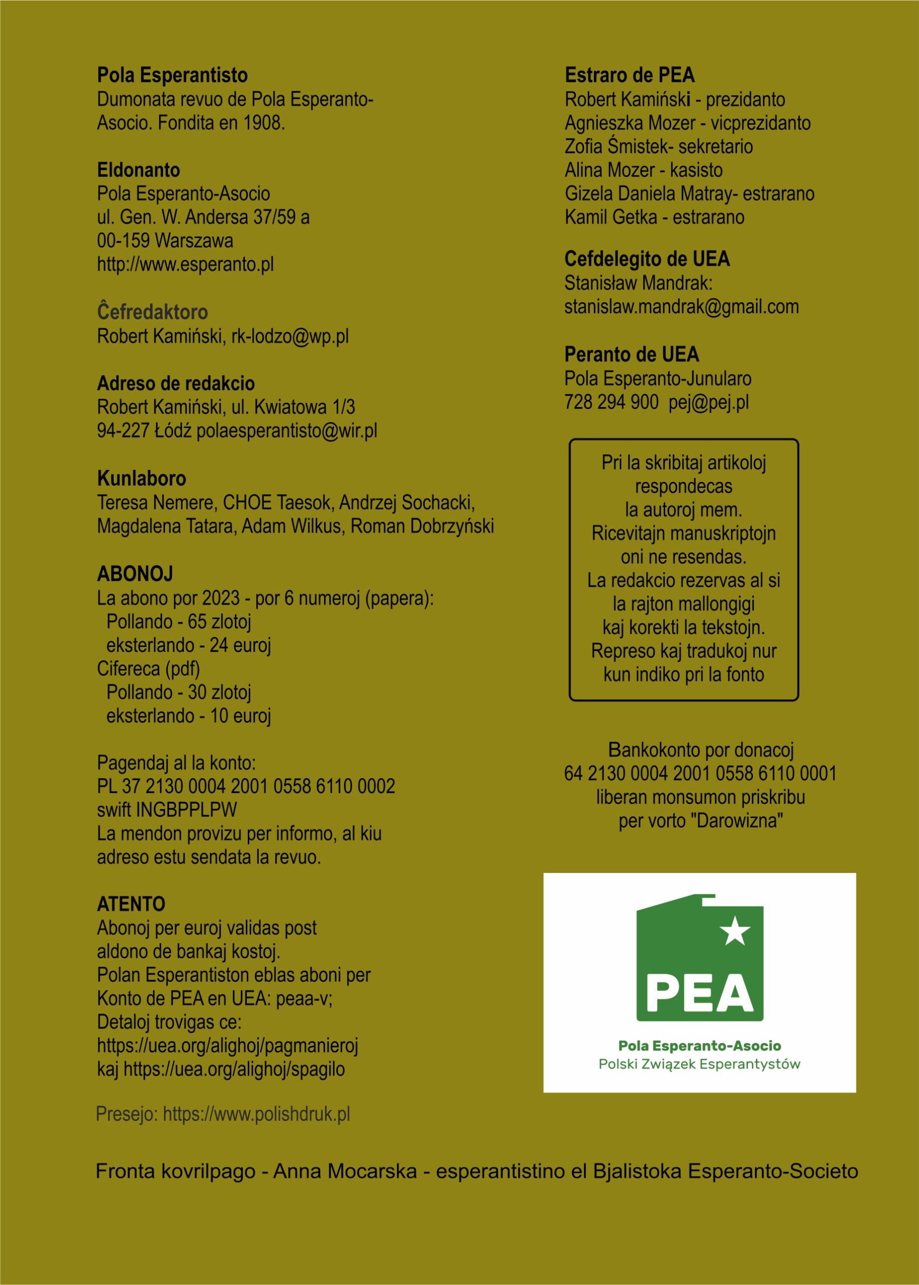 UEA Komunikoj, Rezulto de la belartaj konkursoj de UEA. Polo inter premiitoj ….. 17